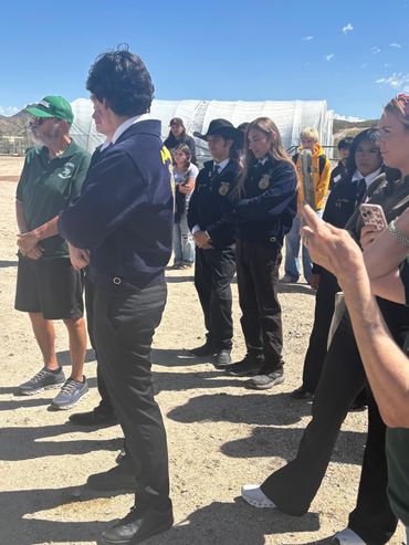 A special thanks to Ernie Lopez for providing the needed materials to help complete the farm. The dedication plaque is in memory of Linda Carrillo Blake. We would like to thank the superintendent, the FFA sponsor, the officers of the FFA, as well as other FFA students, and members of the alumni association who attended.
